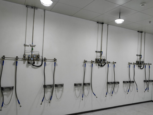 1.氣瓶間內的壓力調整板材與實驗辦公室的氣路末端相互間挑選SS316LBA管做好對接,管路內外面光滑度為Ra<0.4umBA級管路。
